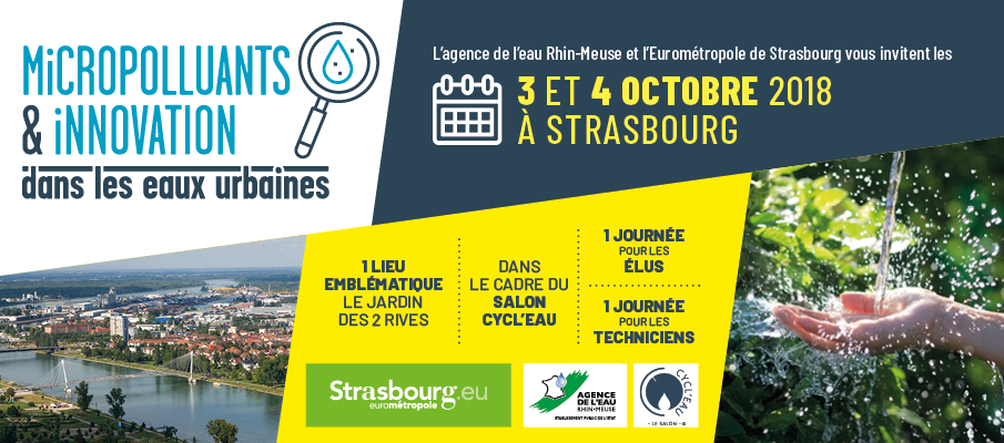 Cycl’Eau Strasbourg accueillera le colloque « Micropolluants et Innovation » organisé par l’Eurométropole de Strasbourg et l’agence de l’eau Rhin-Meuse. Elus, décideurs et techniciens découvriront, pendant 2 jours, les solutions innovantes concrètes pouvant être mises en œuvre au titre de la lutte contre les micropolluants dans les eaux urbaines. Celle-ci est portée par un plan national.